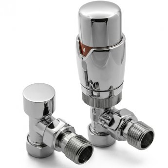 Reina Modal TRV Angled Radiator Valve and LockShield Chrome | Thumbnail Image Reina Modal TRV Angled Radiator Valve and LockShield Chrome
