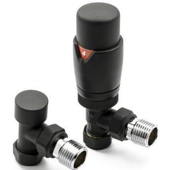 Reina Modal TRV Angled Radiator Valve and LockShield Black | Product Image Reina Modal TRV Angled Radiator Valve and LockShield Black