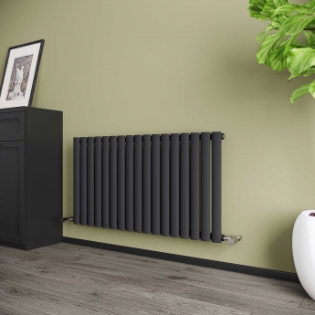 Reina's best-selling Neva radiator is defined by a single or double set of oval-shaped vertical tubes; the soft elliptical profile is a simple and stylish option for a modern interior. Neva radiators are manufactured from strong and durable mild steel, with a textured anthracite grey finish (RAL 7016) that can help create a completely different harmony to typical white radiators. All Neva models are available in 550mm heights, with a number of different widths available to suit the heating requirements of the room.