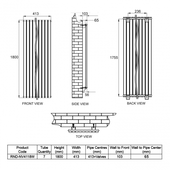 - 1/2" BSP side connections - allow +90mm for radiator valve pipe centres