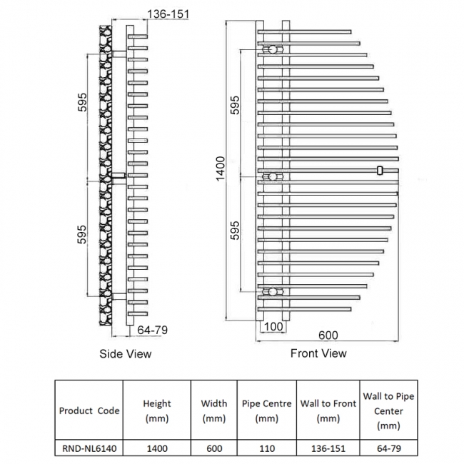Reina Mini Round Thermostatic Element 600W - Chrome