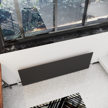 - Minimalist designer horizontal radiator consisting of slim 13mm flat-fronted panel