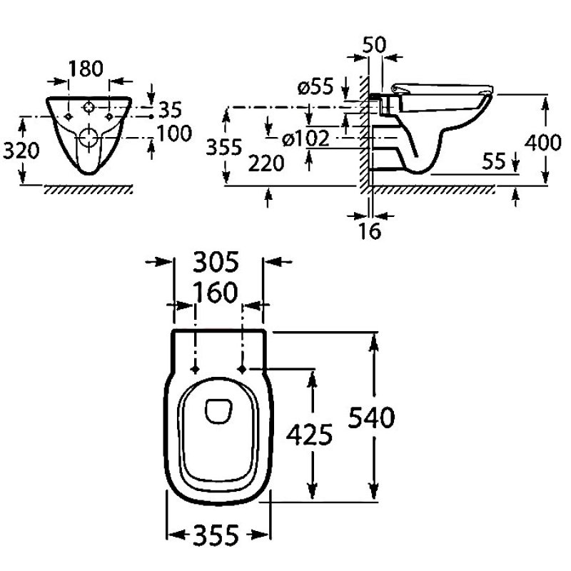 RAK Origin 62 Wall Hung Toilet - Urea Soft Close Seat