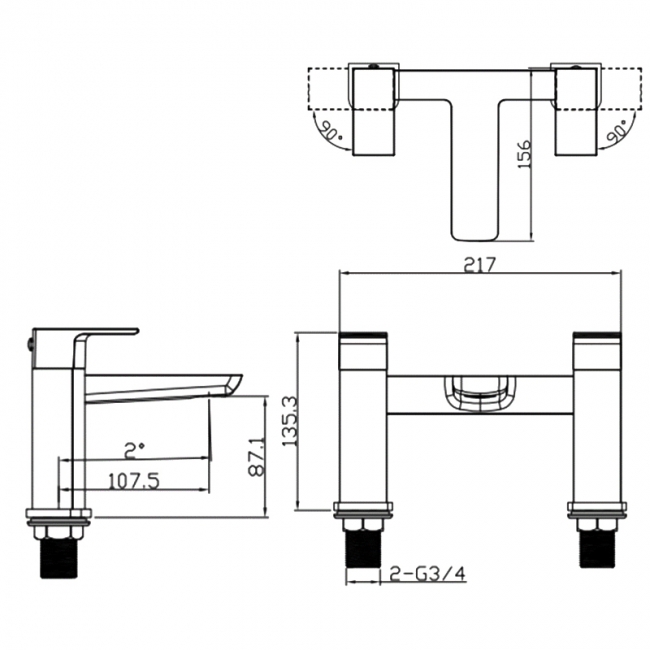 Sagittarius Ravenna Bath Filler Tap Pillar Mounted - Matt Black
