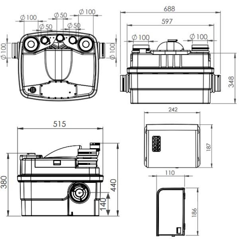 The Saniflo Sanicubic 2 Pro Heavy Duty Macerator Pump is a model from one of the most powerful pumps in the Saniflo Professional Range Sanicubic by the Saniflo. The Sanicubic 2 Pro is a high performance macerating pump for commercial use. Contains two separate, load balanced pumps with high performance macerating systems and will operate alternately. In the event of inflow overload, both motors run at the same time, or in the unlikely event that one motor fails, the other one will take over.