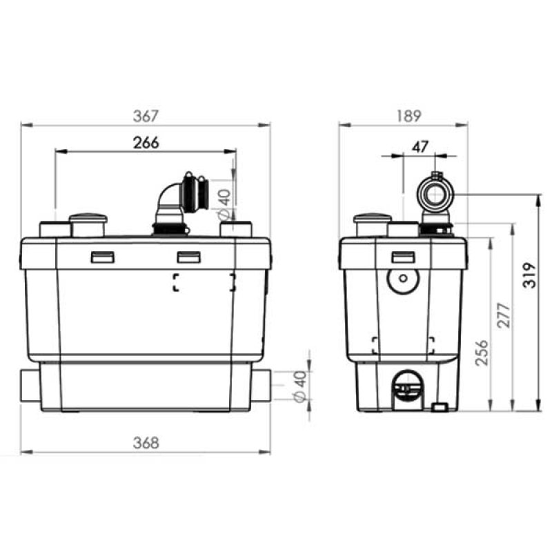 The Saniflo Sanispeed + Light Commercial Sanitary Pump for Grey Water is a model from the most powerful pumps in the Saniflo Professional Range Sanispeed + by the Saniflo. Ideal for light commercial environments such as small shops, cafes, offices, bars and dental sugeries where grey waste water needs to be disposed of. Sanispeed + deals with grey water from a shower, wash basin, bath, bidet, washing machine, dishwasher and sink.