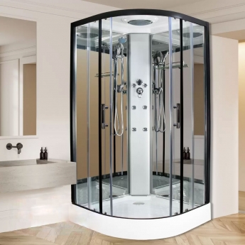 Insignia Premium Quadrant Steam Shower Cabin 800mm x 800mm - Black Frame