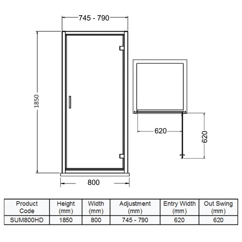 Delphi Advantage Hinged Shower Door 800mm Wide - 6mm Glass