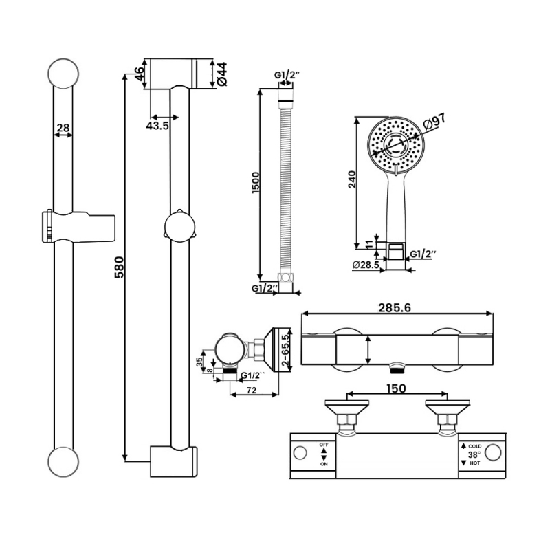 Signature Balance Cool-Touch Thermostatic Bar Mixer Shower with Adjustable Shower Riser Kit - Chrome | Product Image Signature Balance Cool-Touch Thermostatic Bar Mixer Shower with Adjustable Shower Riser Kit - Chrome