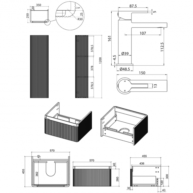 • Supplied with vanity unit with basin, tall stotage unit and basin mixer tap