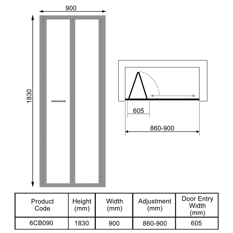 Signature Contract Bi-Fold Shower Door 900mm Wide - 6mm Glass | Product Image