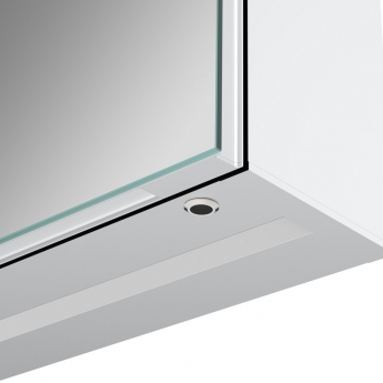 The mirrored doors have front-lit LED light strips and come with a cool lighting effect, which will illuminate the bathroom without being too overpowering in the space.
