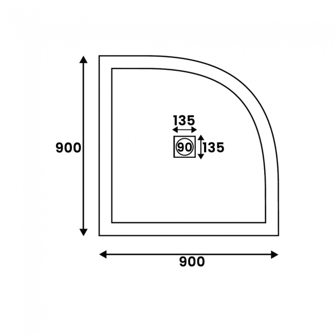- Curved quadrant shower tray measuring 900mm x 900mm