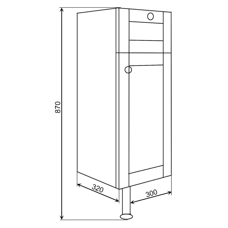 Signature Malmo Floor Standing 1-Door and 1-Drawer Base Unit 300mm Wide - Satin White Ash | Product Image