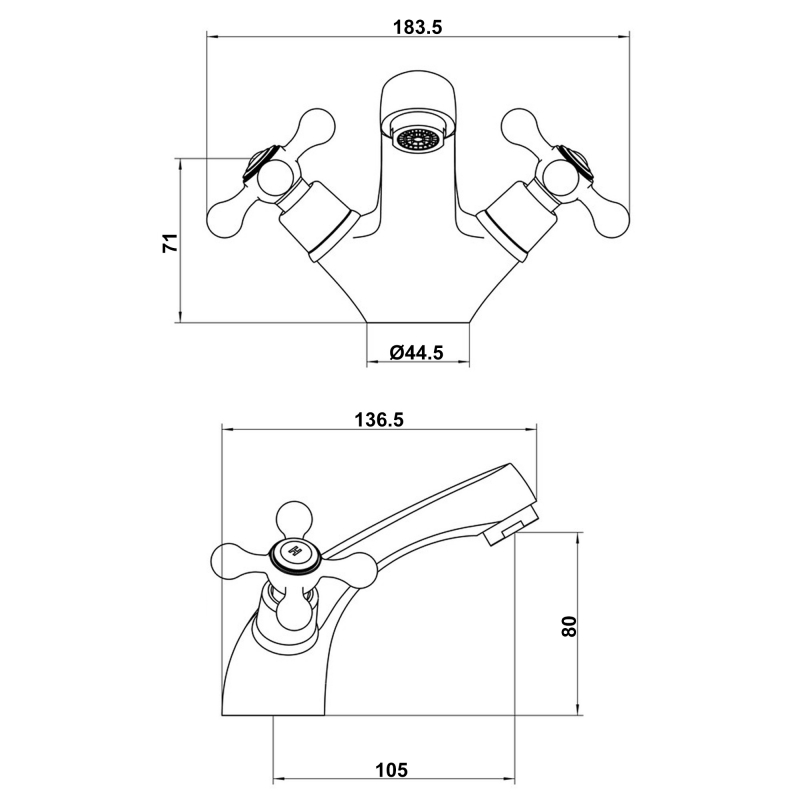 Signature Mayfair Basin Mixer Tap Dual Handle with Waste - Chrome