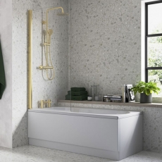 Bring a traditional touch to your modern bathroom with the Signature Single Square Hinged Bath Screen 1400mm by 800mm in Brushed Brass.