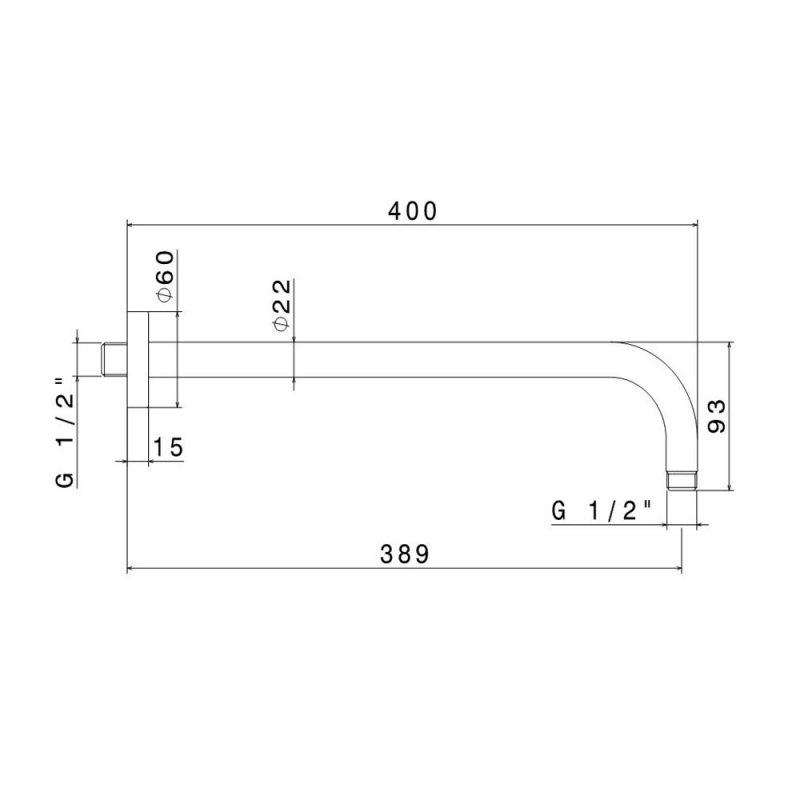 Vema Round Wall Mounted Shower Arm 400mm Length - Chrome