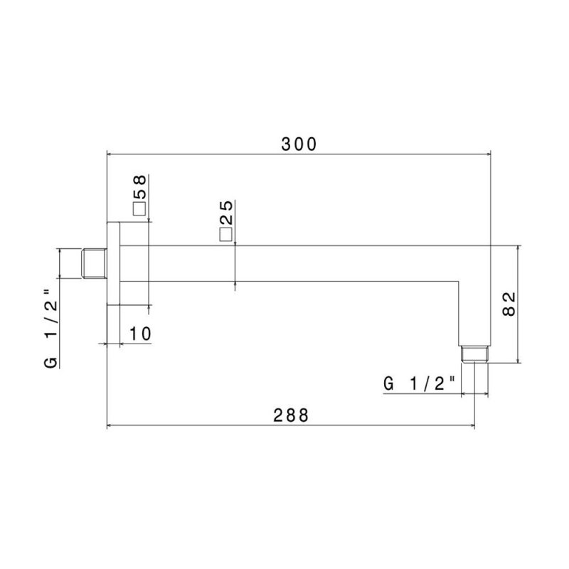 Vema Square Wall Mounted Shower Arm 300mm Length - Chrome