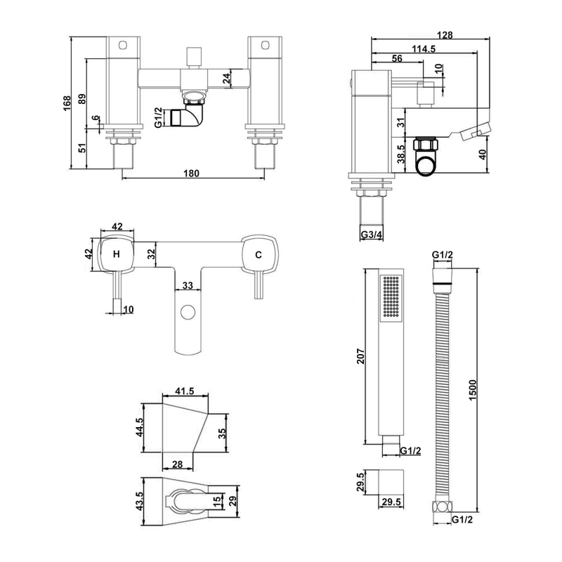 Signature Alpha Bath Shower Mixer Tap with Shower Kit and Bracket - Chrome