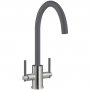 Prima Coloured Swan Neck Dual Lever Kitchen Sink Mixer Tap - Gun Metal/Brushed Steel