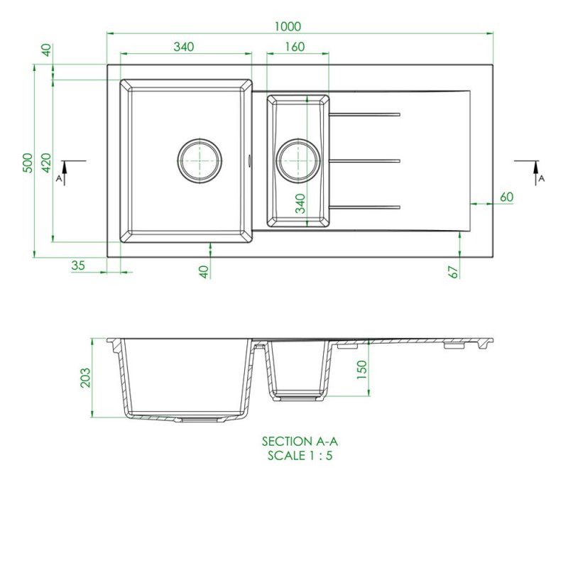 Prima+ Granite Composite 1.5 Bowl Inset Kitchen Sink with Waste Kit 1000mm L x 500mm W - Light Grey | Thumbnail Image Prima+ Granite Composite 1.5 Bowl Inset Kitchen Sink with Waste Kit 1000mm L x 500mm W - Light Grey