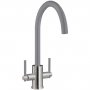 Prima Coloured Swan Neck Dual Lever Kitchen Sink Mixer Tap - Grey/Brushed Steel