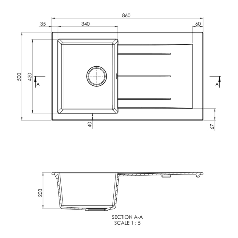 Prima+ Granite Composite 1.0 Bowl Inset Kitchen Sink with Waste 860mm L x 500mm W - White