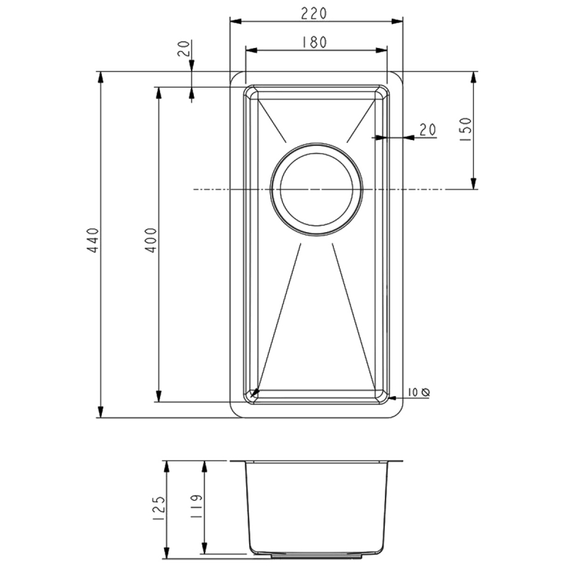 Prima+ R10 0.5 Bowl Undermount/Inset Kitchen Sink with Waste Kit 440mm L x 220mm W - Stainless Steel | Thumbnail Image Prima+ R10 0.5 Bowl Undermount/Inset Kitchen Sink with Waste Kit 440mm L x 220mm W - Stainless Steel