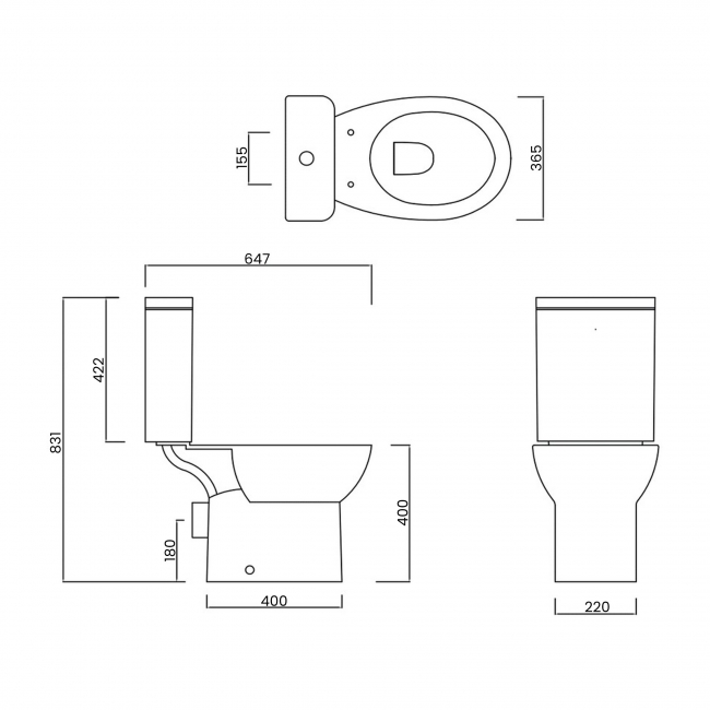 - Complete close coupled toilet including rimless pan, dual flush cistern and soft closing seat
