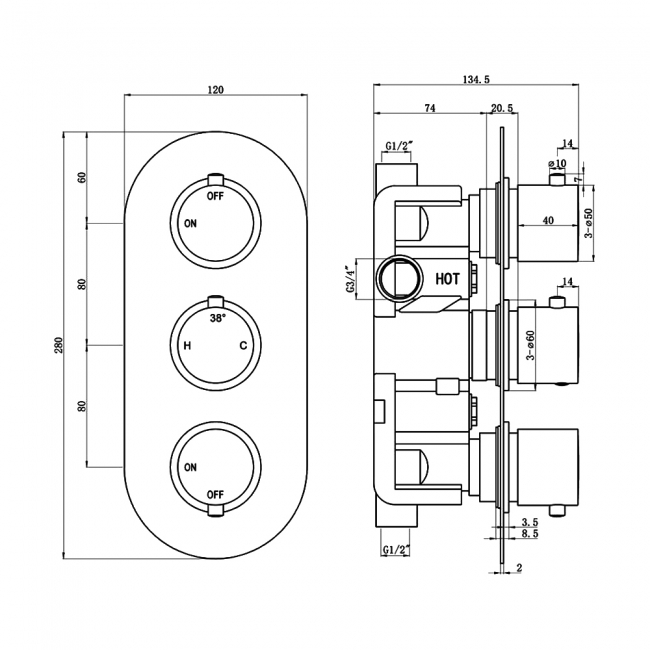 Shower Valve Width120mm