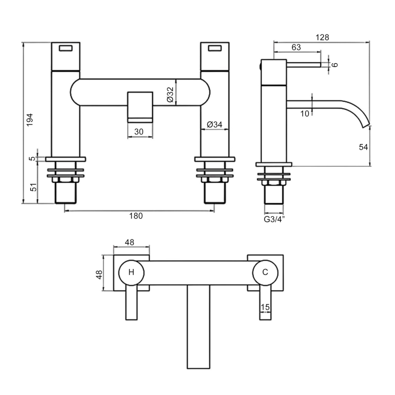 Deva Ethos Pillar Mounted Bath Filler Tap - Chrome