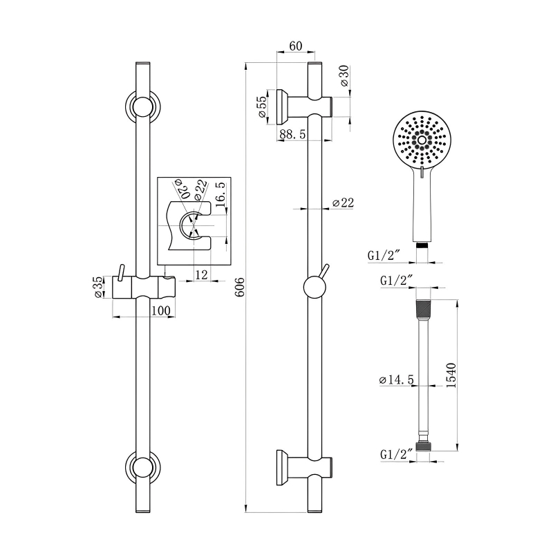 Shower Kit IncludesSlider Rail, Shower Handset, Shower Hose,Wall Bracket