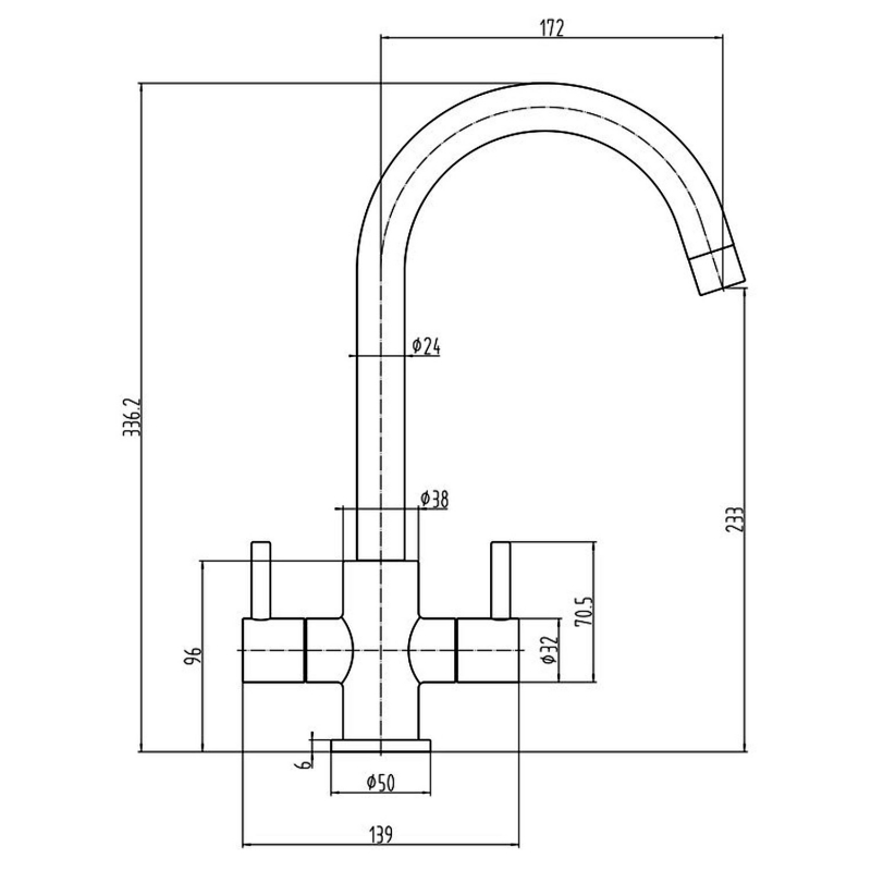 Tap Base to Spout233mm
