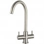 Prima Staten Swan Neck Dual Lever Kitchen Sink Mixer Tap - Brushed Steel