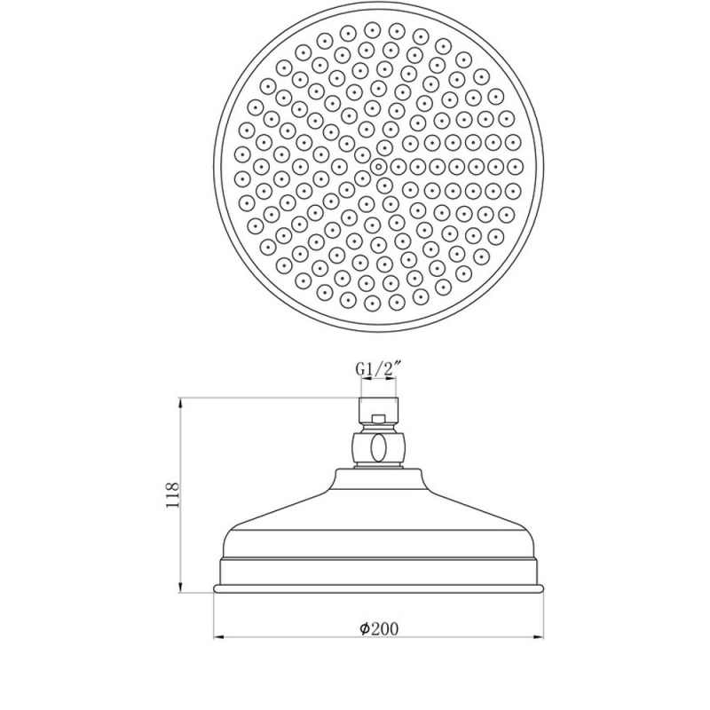 Signature Traditional Round Shower Head 200mm Diameter - Chrome