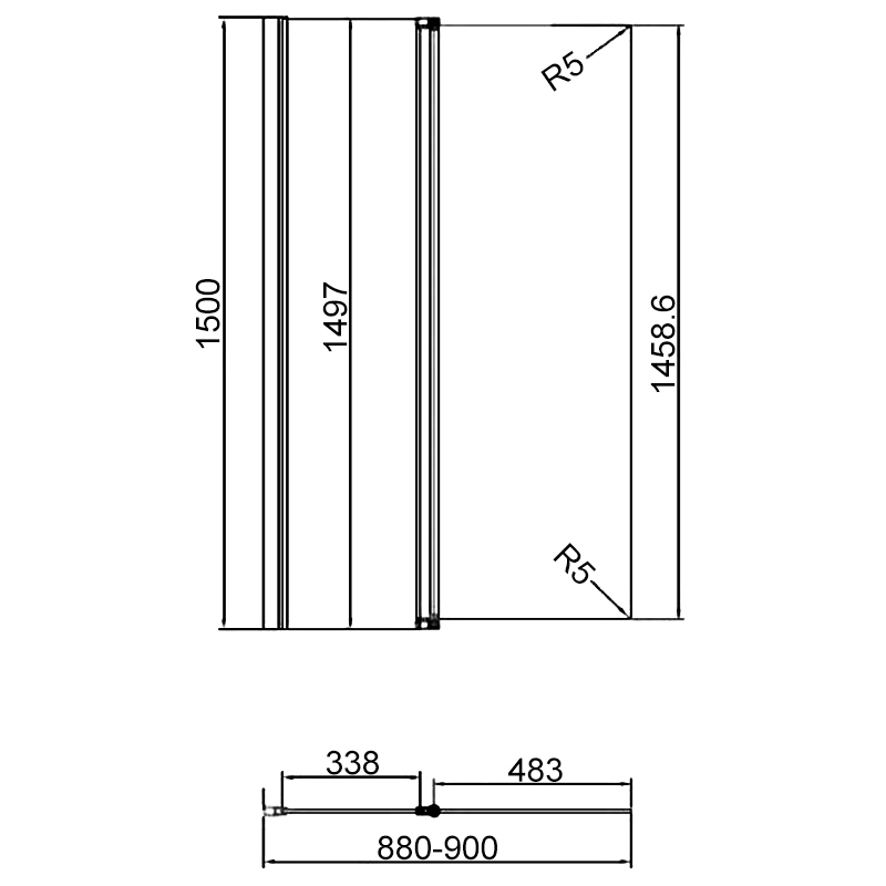 Merlyn Vivid Two Folding Square Bath Screen 1500mm High x 900mm Wide - 6mm Glass
