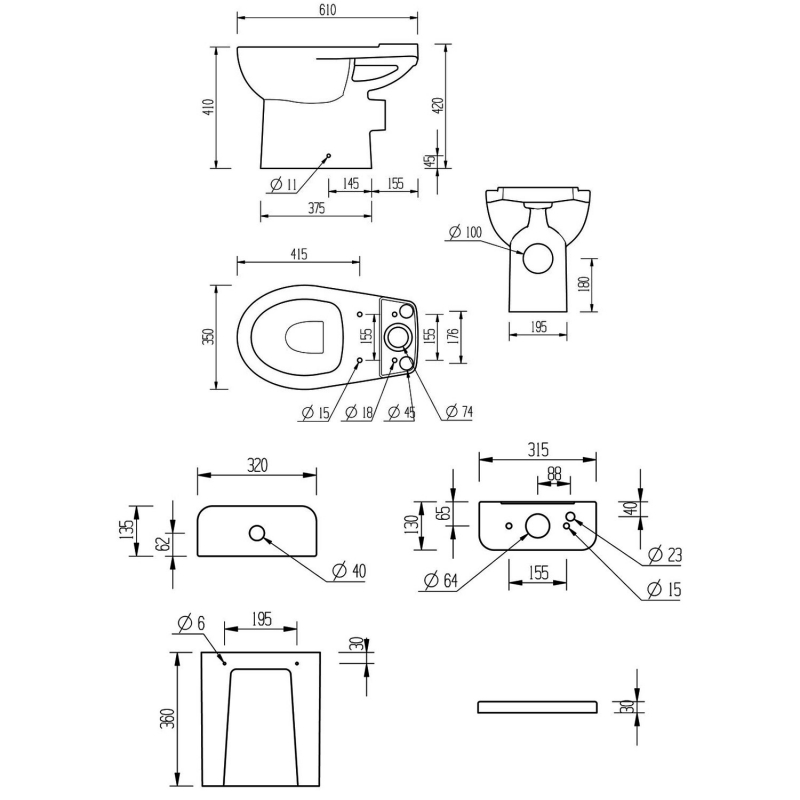 - The water-saving dual flush button gives 4 and 6 litres respectively