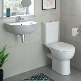 Made from only the best quality vitreous china, the Signature Zeus close coupled toilet is the complete package. It includes the pan, an easy to use push button cistern and a soft close toilet seat that makes loud bangs of the lid a thing of the past. With a white finish, it will blend into the rest of your bathroom design like a dream.