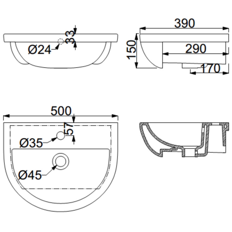 Signature Zeus Semi-Recessed Basin 500mm Wide - 1 Tap Hole | Product Image Signature Zeus Semi-Recessed Basin 500mm Wide - 1 Tap Hole