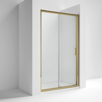 Signature Verve Brushed Brass Sliding Shower Door - 6mm Glass
