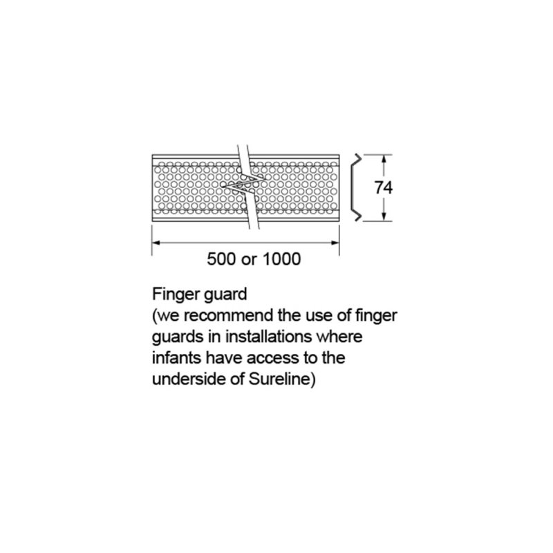 The Smiths Sureline Finger Guard 500mm comes from Sureline range of Skirting Perimeter Heaters manufacture by Smith. The Smiths Sureline Finger Guard 500mm is recommended when infants have access to the underside of the Sureline unit after installation. The Smiths Sureline Finger Guard 500mm measures in at 74mm high and 500mm wide.