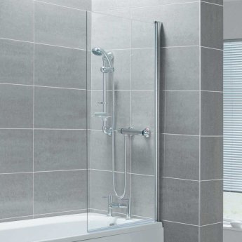 Signature Single Square Hinged Bath Screen 1400mm High x 800mm Wide - Chrome | Product Image