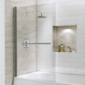 Signature Single Square Hinged Bath Screen 1400mm High x 800mm Wide - Chrome
