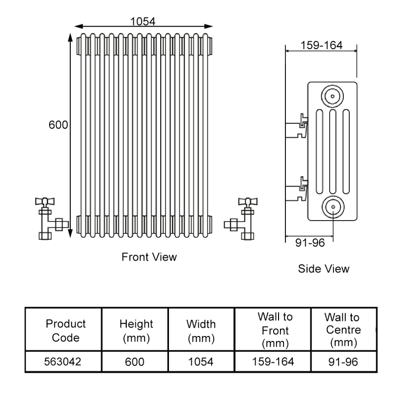 - The image showing the radiator in a room depicts a 600mm x 628mm (13 section) model in a 3-column format