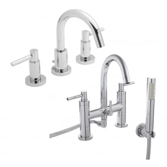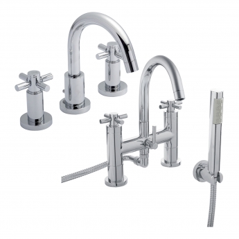 Hudson Reed Tec Crosshead 3-Hole Basin Mixer Tap and Bath Shower Mixer Tap - Chrome