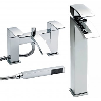 Nuie Vibe Tall Mono Basin Mixer Tap and Bath Shower Mixer Tap Pillar Mounted - Chrome