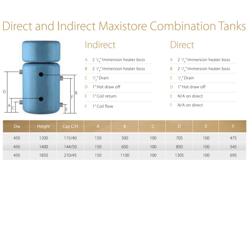 Telford Maxistore Econ7 Direct Copper Combination Tank 1850x450 210 Litre