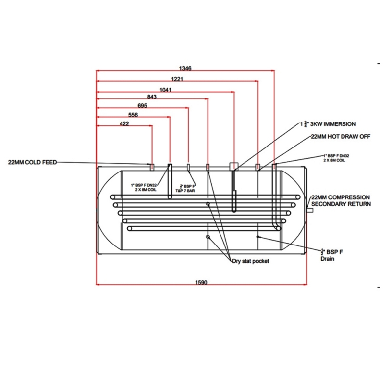 Telford Tempest Heat Pump Horizontal Indirect Unvented Stainless Steel Hot Water Cylinder - 400 Litre | Thumbnail Image Telford Tempest Heat Pump Horizontal Indirect Unvented Stainless Steel Hot Water Cylinder - 400 Litre