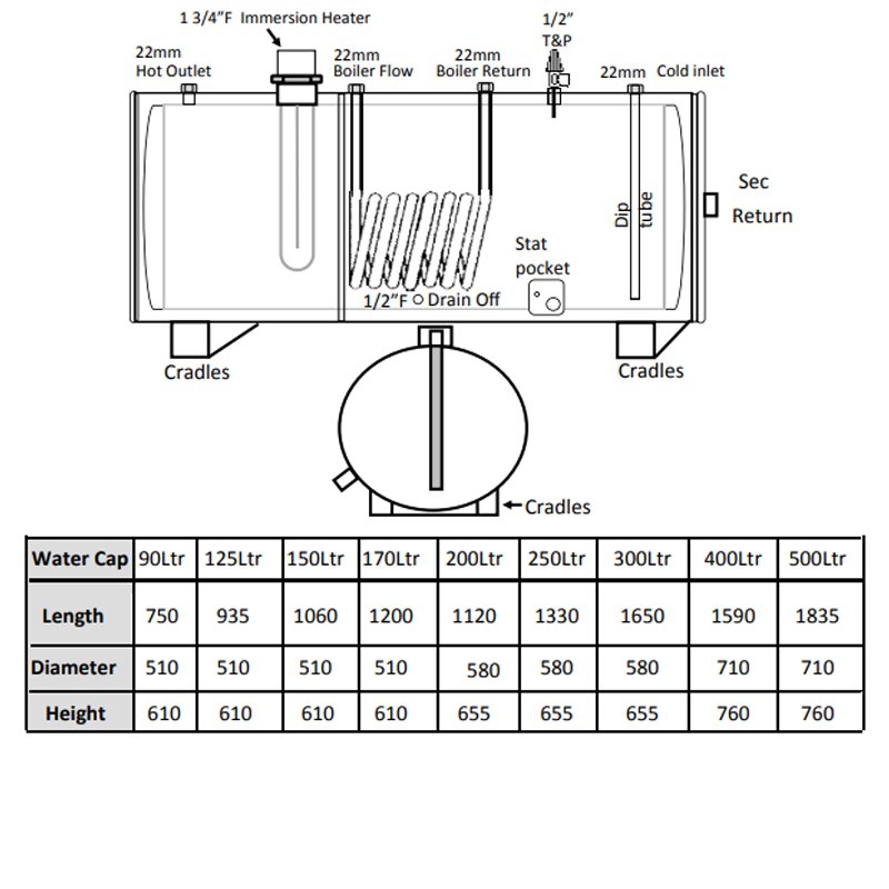 Telford Tempest Unvented Horizontal Indirect Stainless Steel Hot Water Cylinder 500 Litre Telford Tempest Unvented Horizontal Indirect Stainless Steel Hot Water Cylinder 500 Litre