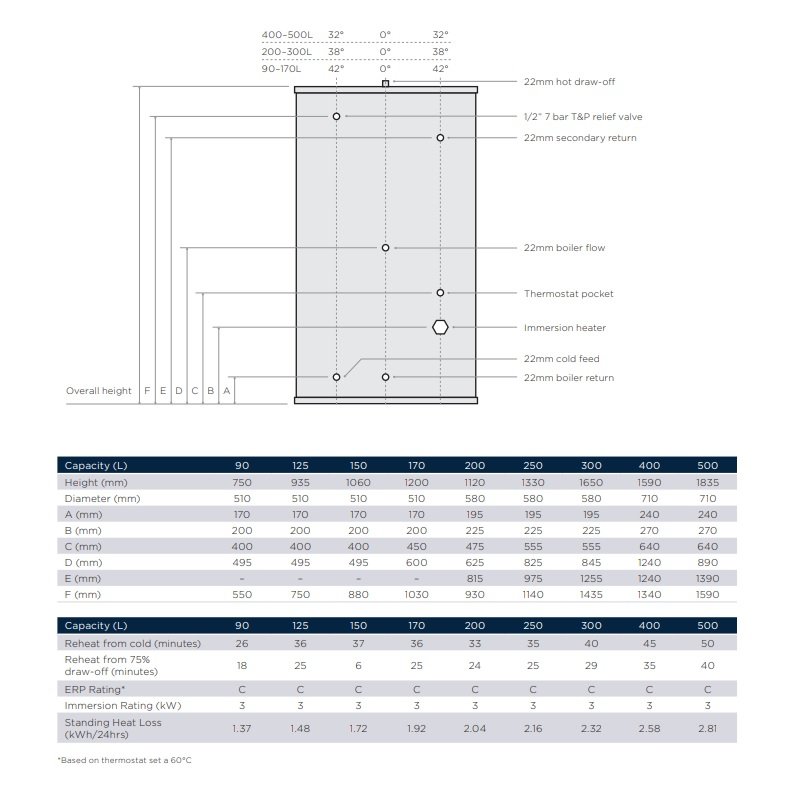 - Factory-fitted temperature and pressure relief value set at 7 bar / 90 Degree C
